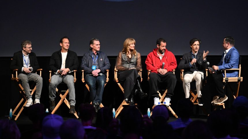 Adam, as Noah alluded to, you’ve been exceptionally the opposite of Jay Kelly, in terms of casting people that you’ve known forever in your films and being very present with your family — I think your whole family was in Happy Gilmore 2 earlier this year! But even with that being the case, has being part of this movie, watching it and thinking about it, made you look at your role as a movie star, or movie stardom in general, any differently than you had before?